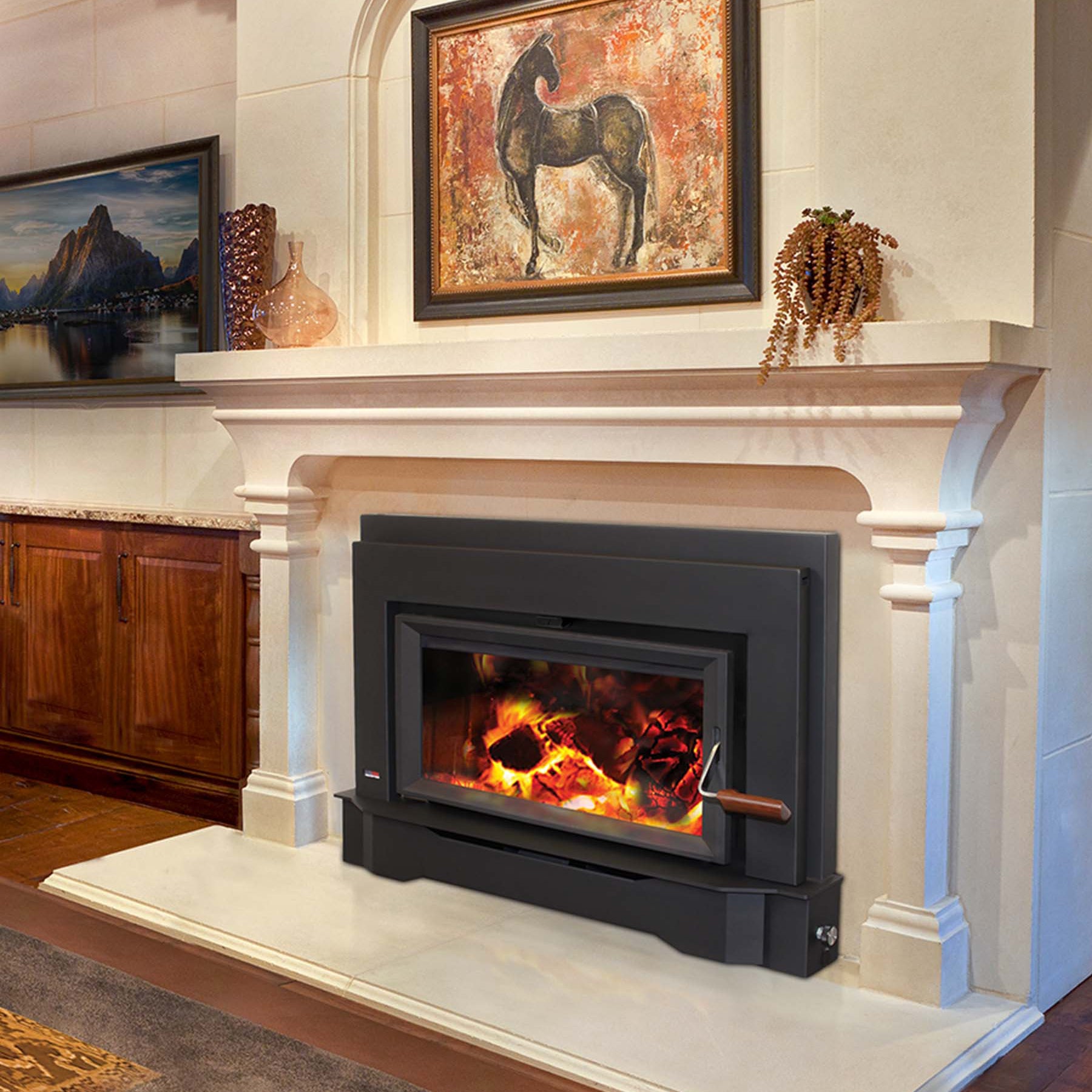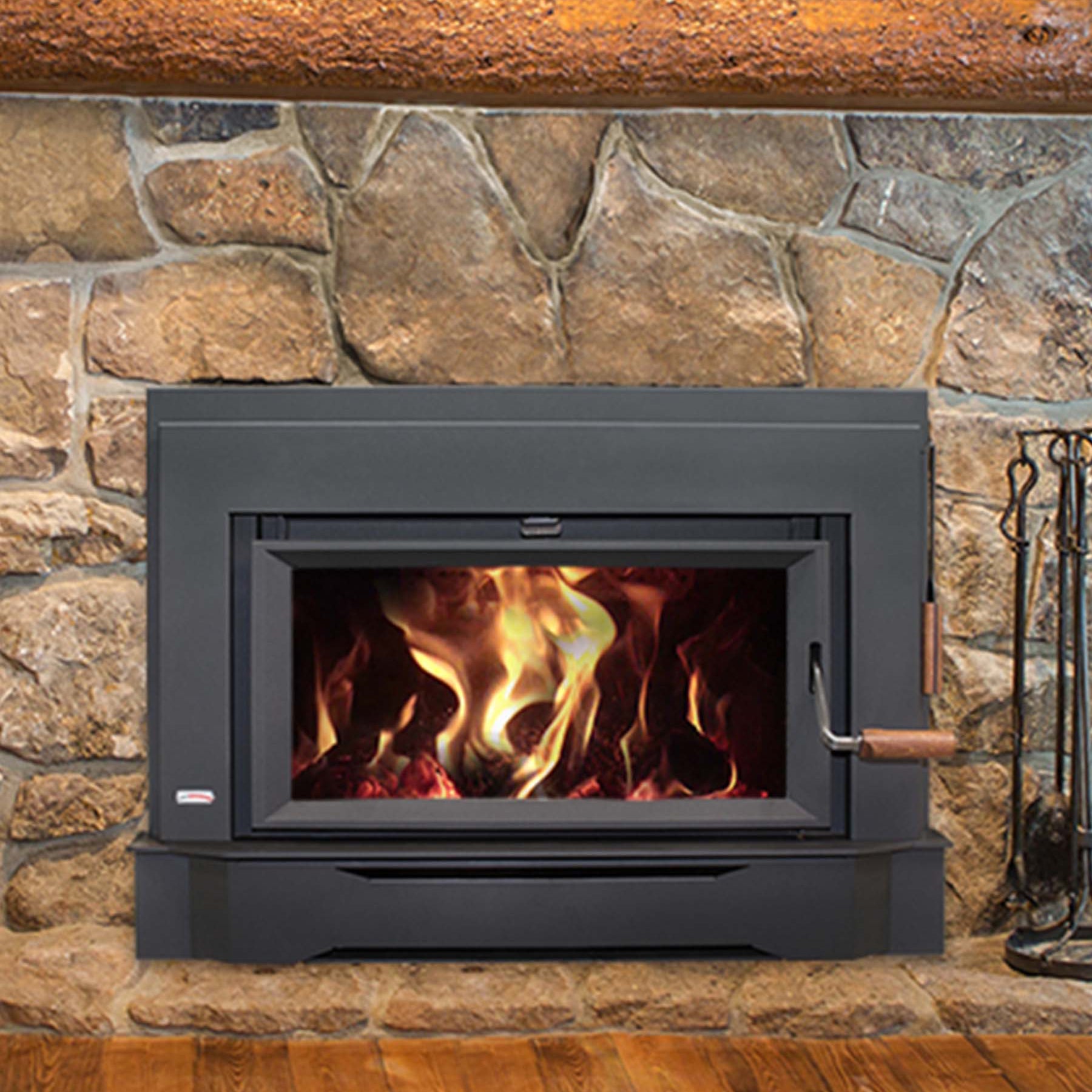 The Sirocco 25 is a medium sized fireplace insert. At 2.3 cu. ft., the firebox will take up to a 22″ log and can deliver warmth for up to 25 hours on low. The Sirocco 25 is very clean and efficient and can heat from 400 – 1,800 sq. ft. This flush insert extends to only 2.6 inches from the face of the fireplace to the door opening, helping to keep hearth protection to a minimum. The door features a large, 24″ x 11″, wide-screen glass viewing area with a nickel plated and hand made olive-wood door handle. Attention to detail is evident from the layered surround panel to the unique control system that allows you to select the heat you want.