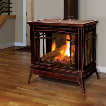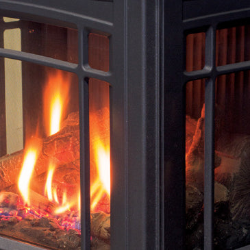The Berkeleys European cast iron outer construction creates a traditional aesthetic with modern accents. What really sets the Berkeley apart is it's 180 degrees viewing angle, providing plenty of exposure to the high definition log set and ceramic burner. The Berkeley is available in both a matte black finish and enamelled antique chestnut.