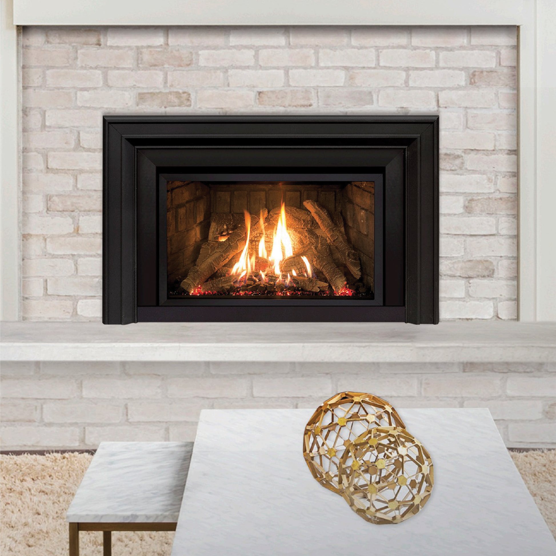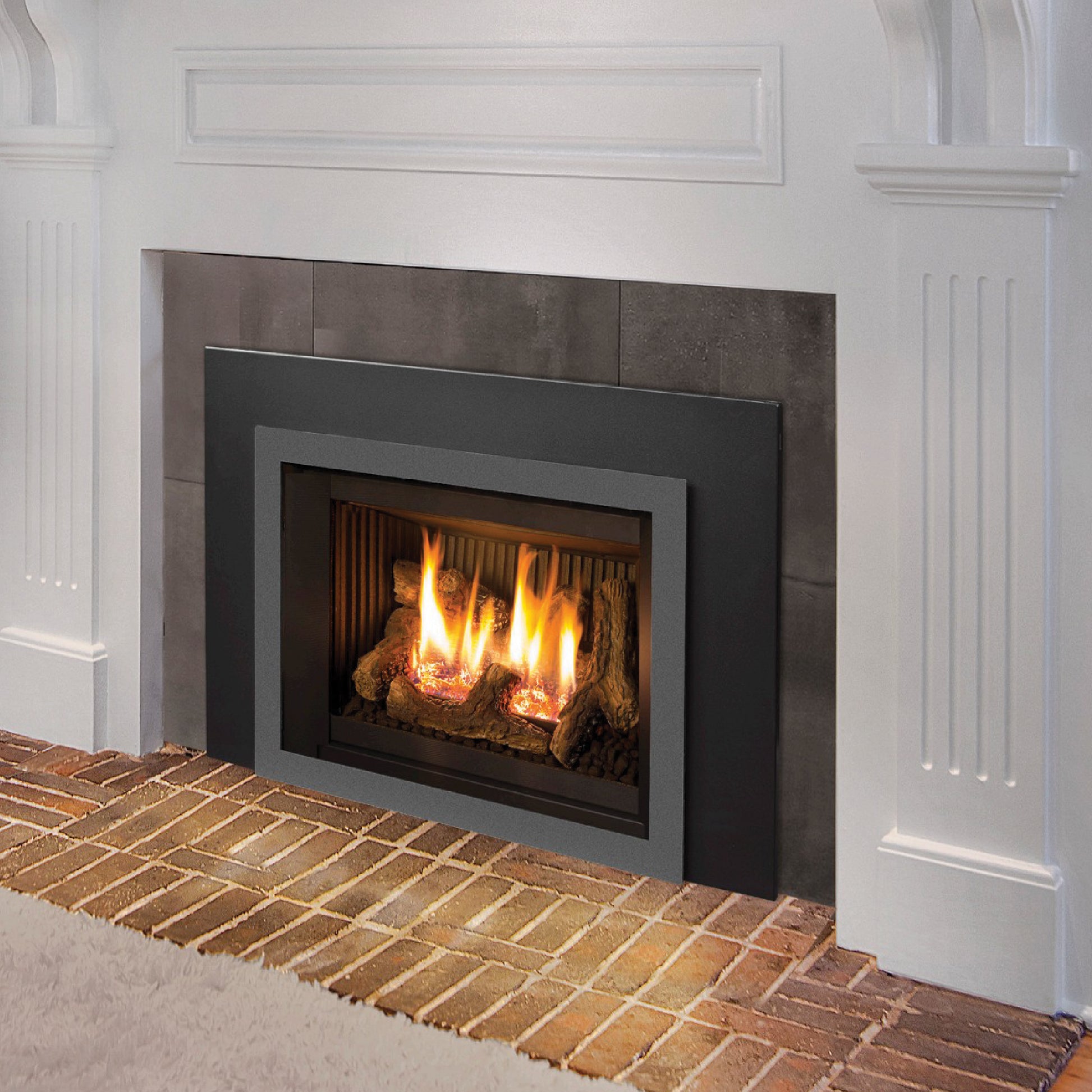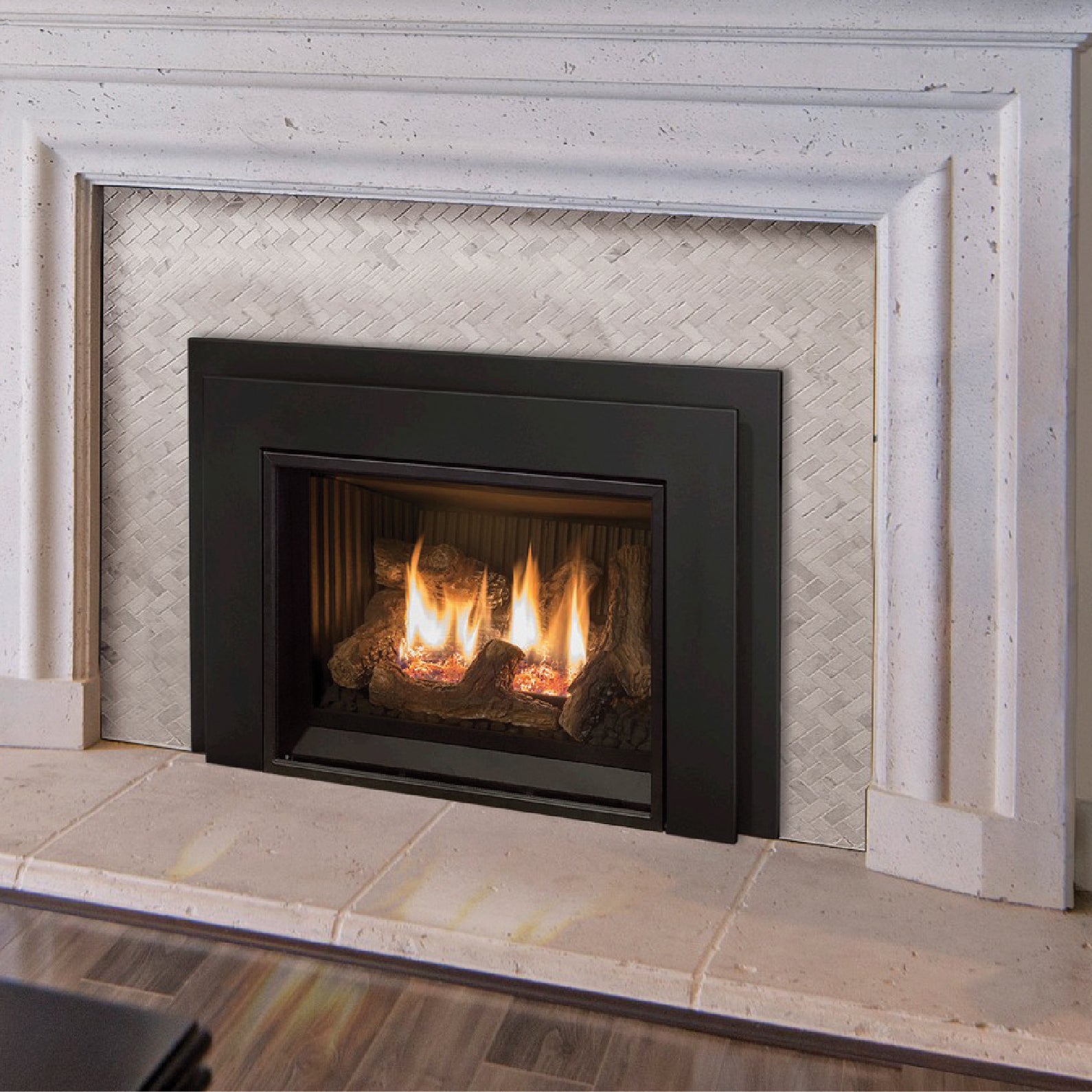 The Enviro E-series comes with a surround and a painted black liner, fan and remote. E30, E33 & E44 log sets sold separately. This series has everything you need to convert your old wood-burning fireplace into an efficient gas insert. It can even be installed with a horizontal vent if your existing chimney has been compromised.