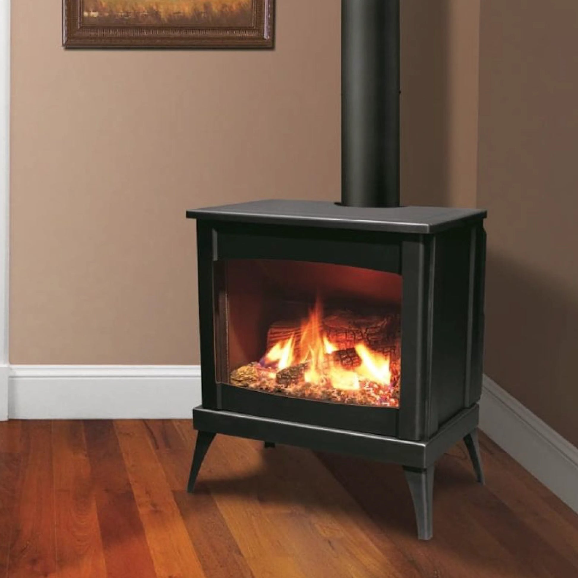 The Westport Cast Iron is one of our most popular freestanding gas stovees. It's traditional design and cast iron outer construction provide a classy appearance. The Westport Cast Icon Gas Stove is available in a painted black matte finish or an atinque chestnut procelain enameled finish. It can be vented top, rear, and is also compatible with a B vent.
