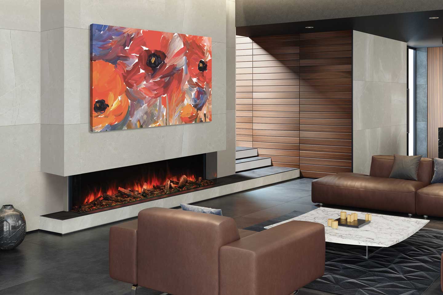 A new innovative electric flame technology with ember bed lighting providing a realistic burn display