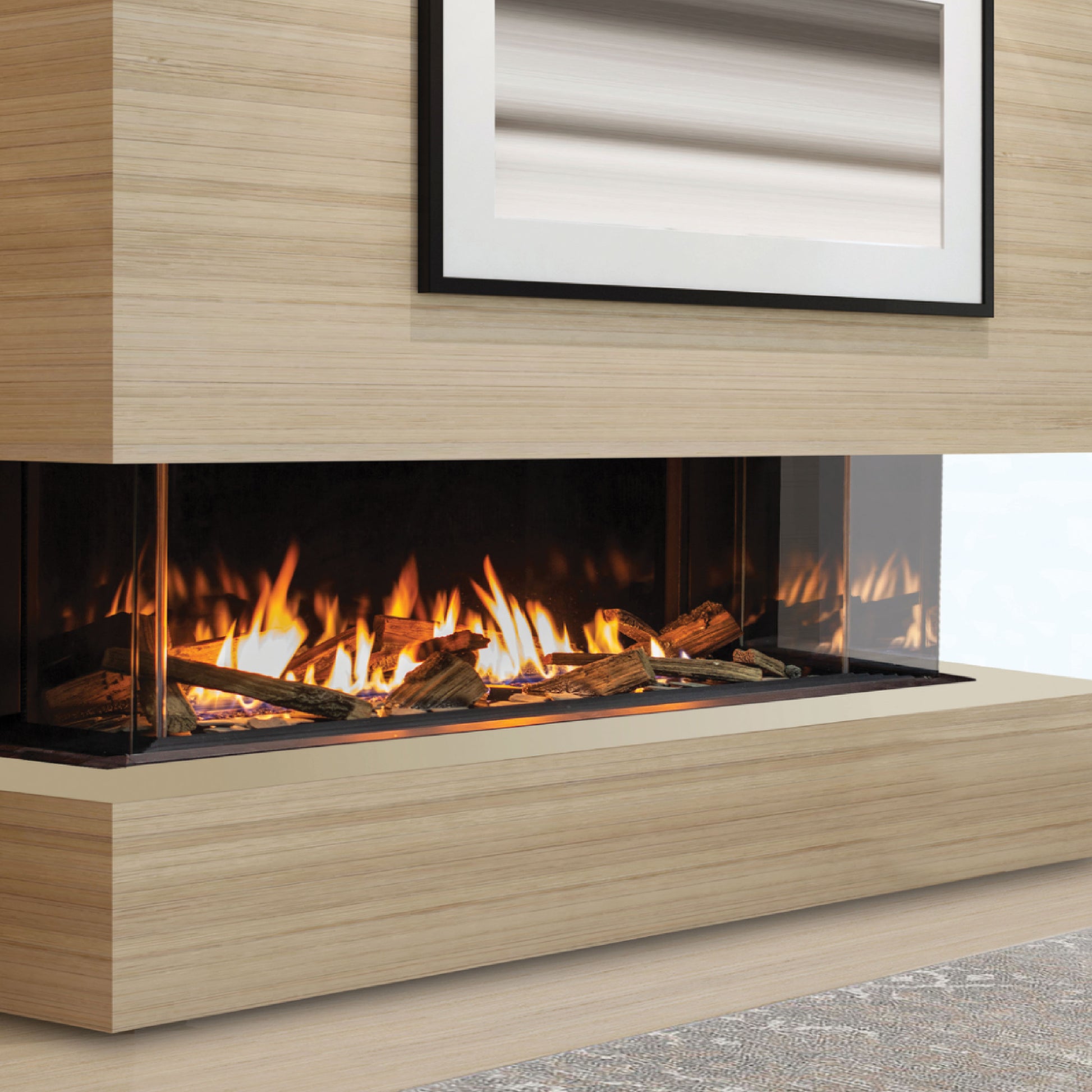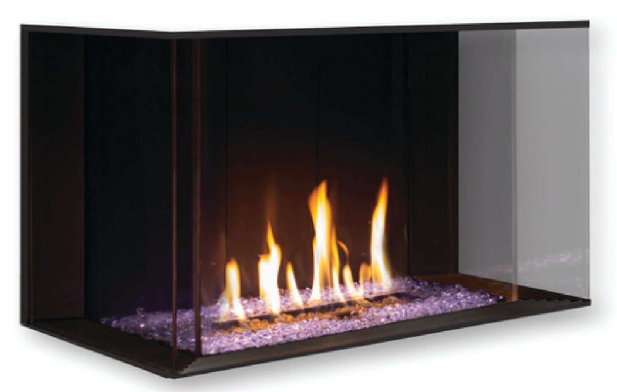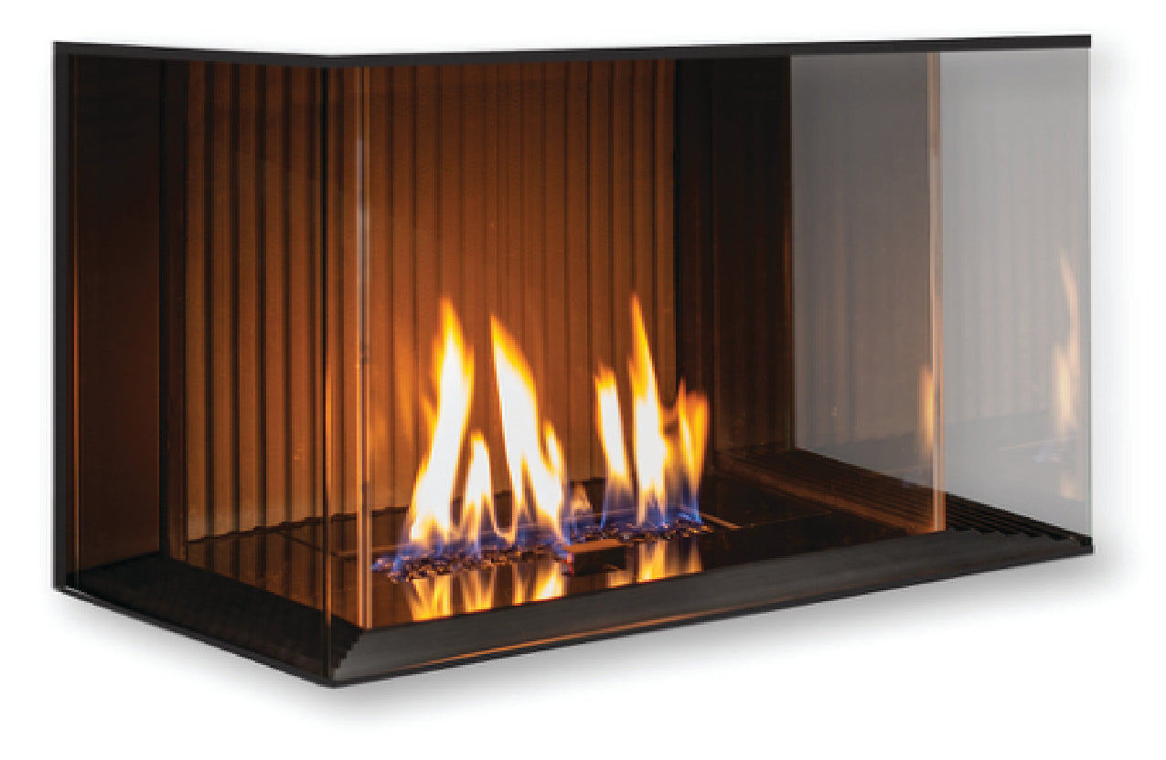The Urbana U screened Bay series offers three-dimensional fireplace design options with a number of ways to install including single-sided, bay, corner or floating looks.