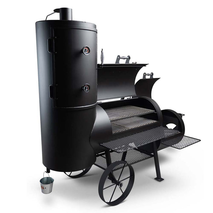 Now you’ve done it, the whole neighborhood is begging for your barbecue. The Durango 24″ will deliver. With 4,141 total inches of cooking surface: 418 square inches of direct grilling surface in the firebox, 1,691 square inches of horizontal indirect grilling surface on 2 shelves and 2,032 square inches (5 shelves @ 406 square inches each) of slow smoking surface in the vertical smoking chamber.